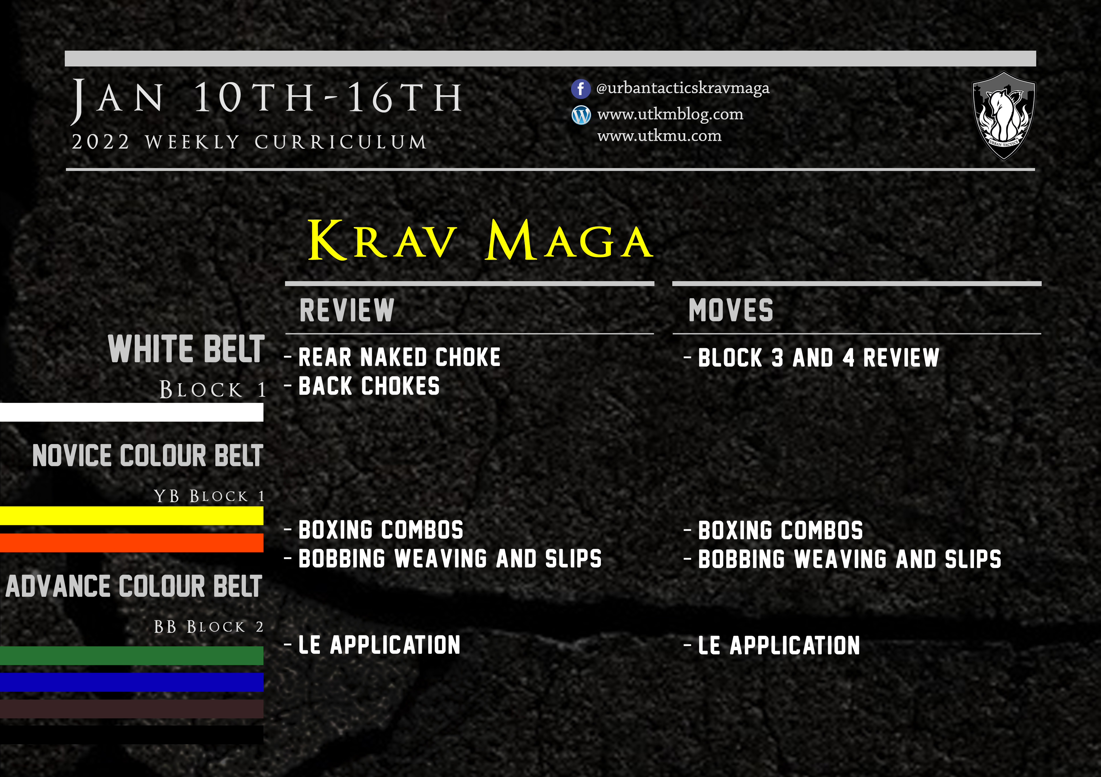 This week’s Krav Maga curriculum: Jan 10th – 16th. For full videos go to www.utkmu.com