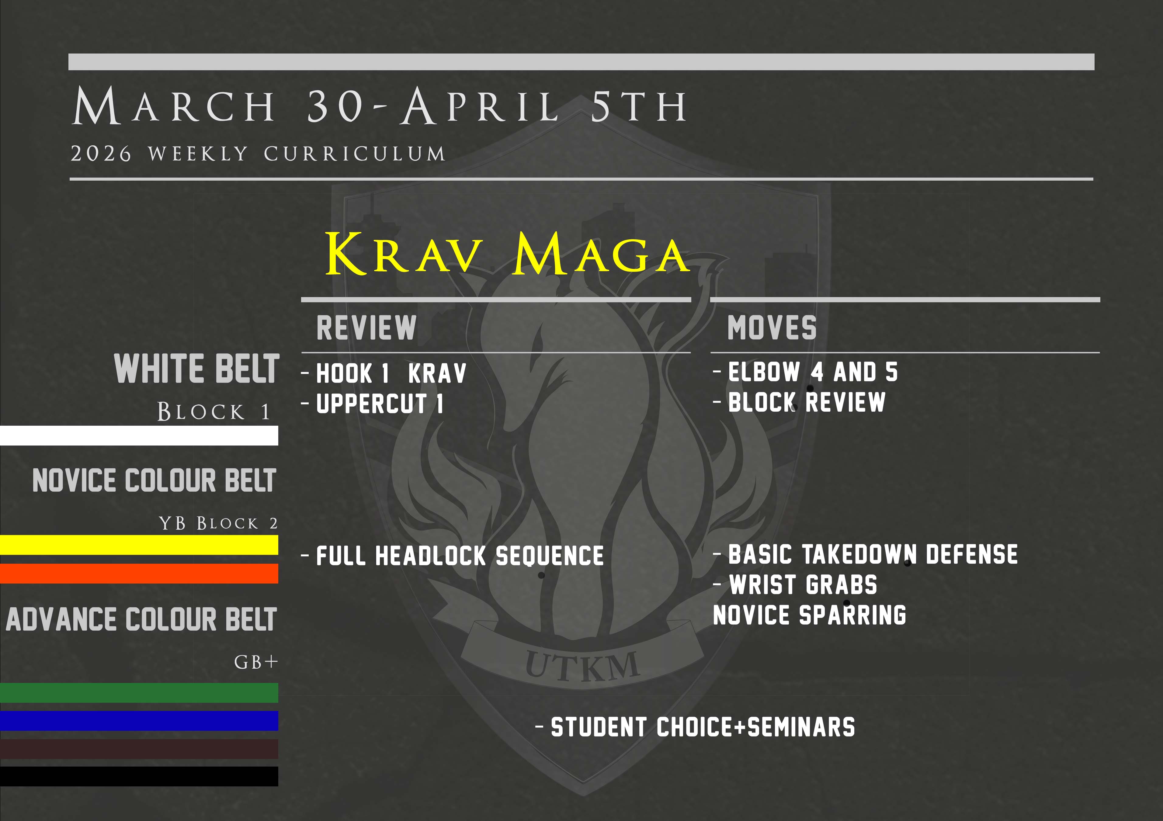 This week’s Krav Maga curriculum: March 30th – April 5th . Join us and train alongside our team as we master new skills in real time at our school. Ready to take the plunge? Come train with us in person or discover our complete video library at www.utkmu.com and begin your journey today!